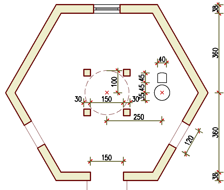 Általában jó ötlet úgy rajzolni, hogy az origó a rajz egy jellemző pontjába essen (pl. a bal alsó sarokba, vagy centrális térnél az alaprajz középpontjába).