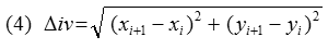 Két szomszédos osztáspont között a görbét húrjával közelítve e húr ∆ív hossza egy olyan derékszögű háromszög átfogójaként adódik, amelynek vízszintes befogója a két x koordináta, függőleges befogója pedig a két y koordináta különbsége: