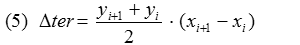 Két szomszédos osztáspont között a görbét húrjával közelítve e húr alatti területet trapéznak tekinthető, s így a szakaszhoz tartozó elemi ∆ter területrész: